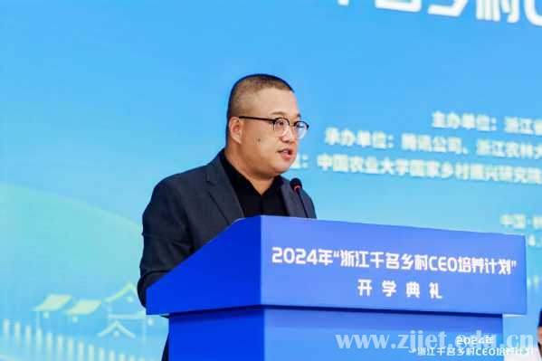 陈德泉在讲话中对浙江省农业农村厅、浙江省农学会、腾讯公司、浙江省乡村建设促进会等单位的信任和支持表示感谢,并简要介绍了学校的基本情况。他表示,学校一直高度重视乡村振兴人才培育,此次承办2024年“浙江千名乡村CEO培养计划”项目,既是积极响应“三支队伍”建设、以人才之力赋能乡村振兴的创新之举,也是学校义不容辞的使命担当。2023年,学校圆满完成了首批100名乡村CEO的培训任务,成效突出、反响良好。今年,学校将与农林大学紧密合作,力争培养出一批既擅长乡村经营与服务,又能引领乡亲迈向共同富裕的乡村振兴人才。